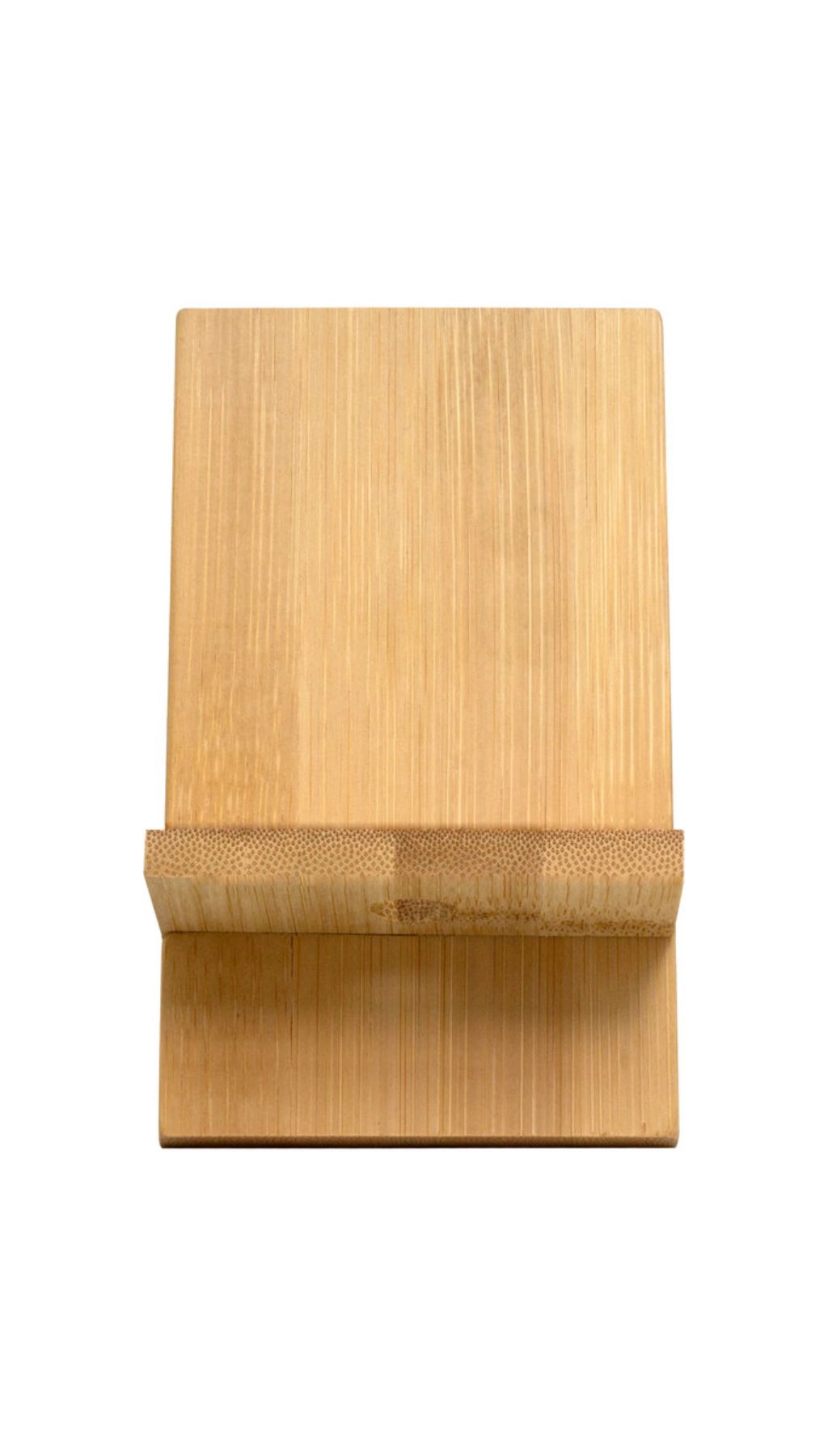 14 x 8 x 0.8 cm. Bambú. Soporte de escritorio para celular. Cuenta con orificio que permite el paso del cable para facilitar la carga del dispositivo. Práctico y transportable. Presentación en caja de regalo.